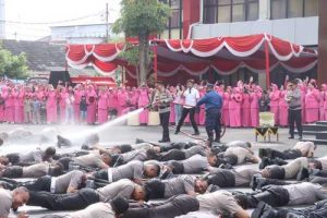 Sebagai bagian dari tradisi, upacara dilengkapi prosesi penyiraman air bunga dan air dari mobil pemadam kebakaran kepada personel yang naik pangkat, yang menjadi simbol kesiapan menghadapi tanggung jawab baru. Kapolres dan Ketua Bhayangkari turut ambil bagian dalam prosesi tersebut.